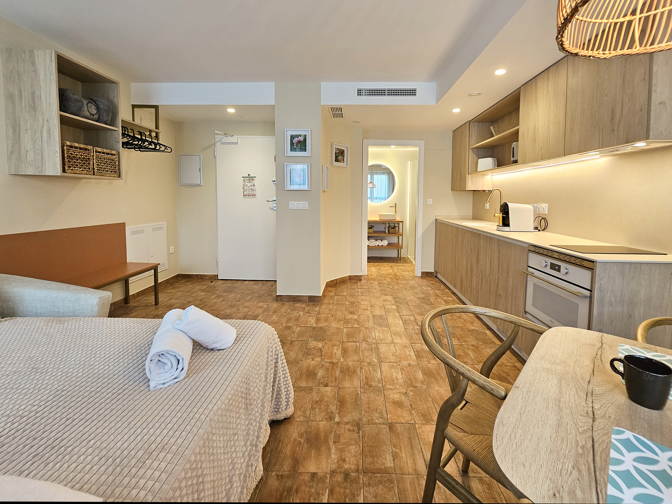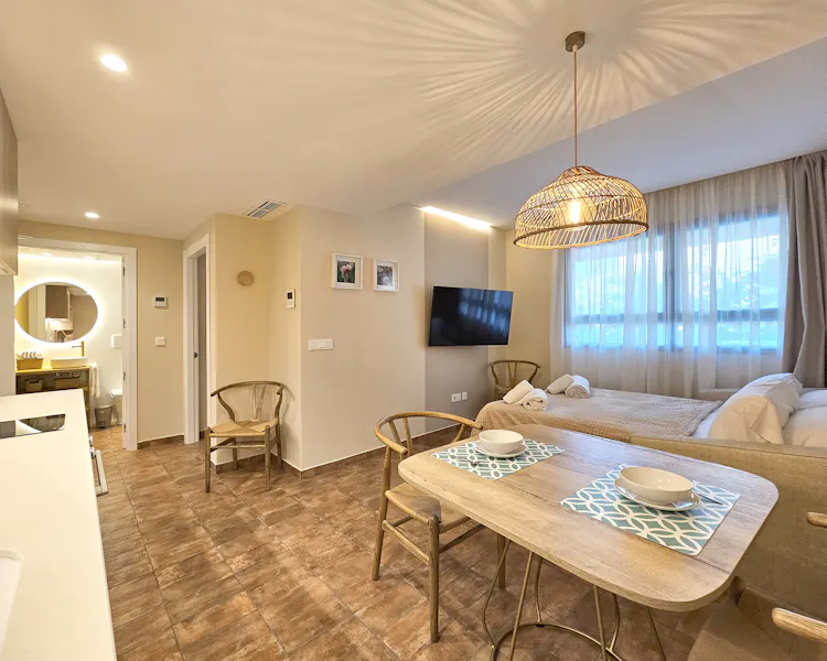 Beautiful studio apartment in a modern building with all amenities. Located on a sunny street in the heart of the City of Arts and Sciences, it's the perfect place to enjoy Valencia. You'll be right in the city center, close to El Carmen, the Roig Arena, Malvarrosa Beach, the Albufera Natural Park, and other areas of the city. Fully equipped and available to accommodate up to 3 people, with Wi-Fi, parking, and air conditioning.