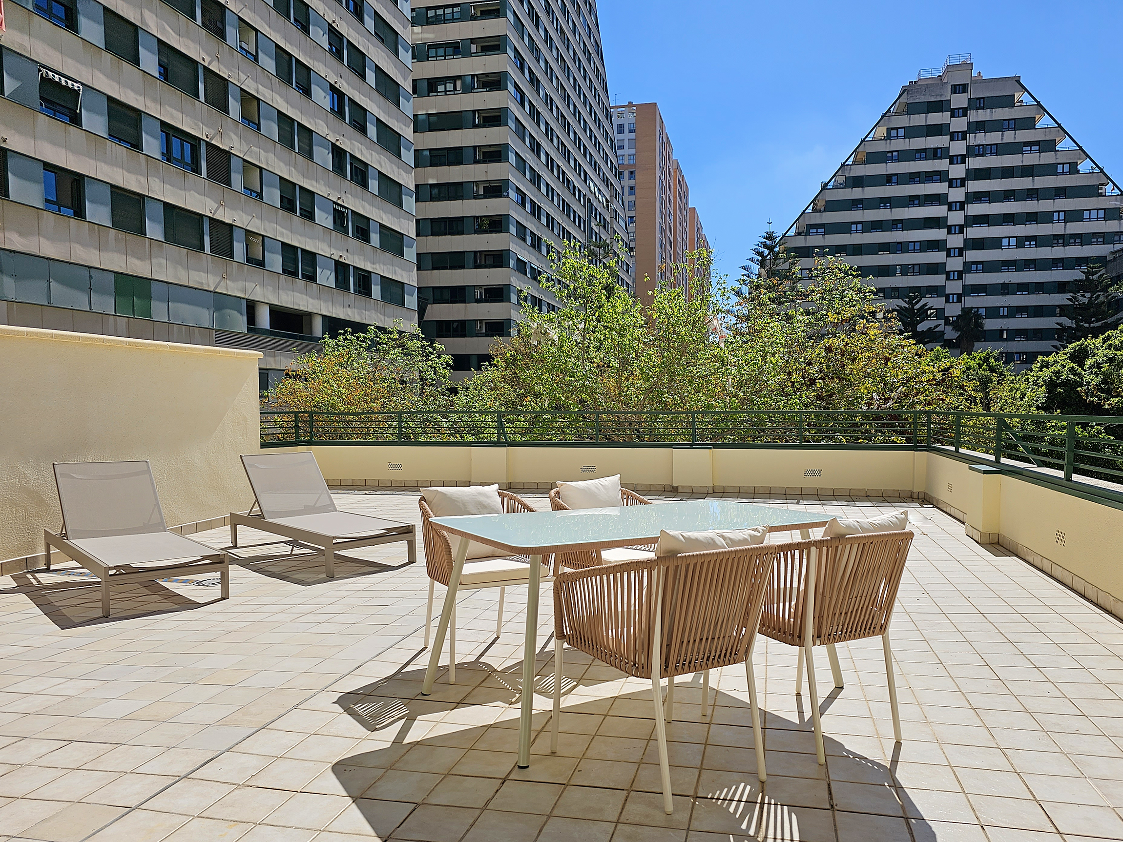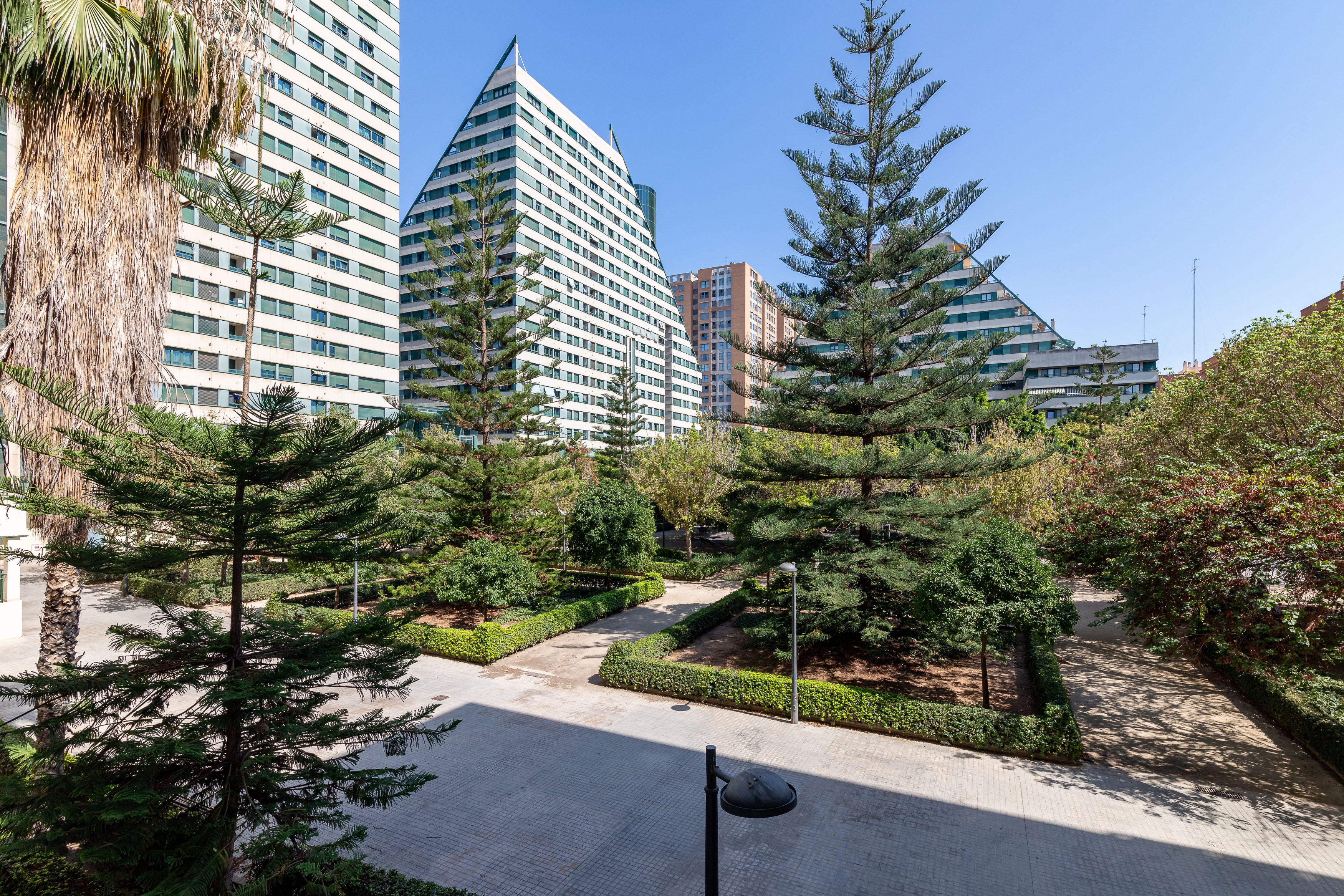 - Large 50m2 terrace with splendid views of a quiet garden square, ideal for contemplating the Palau de les Arts Reina Sofía. Equipped with a table with 4 chairs and two sun loungers.