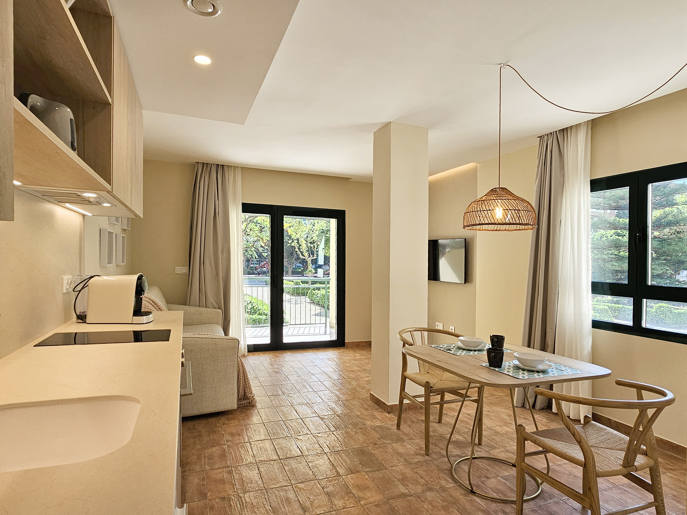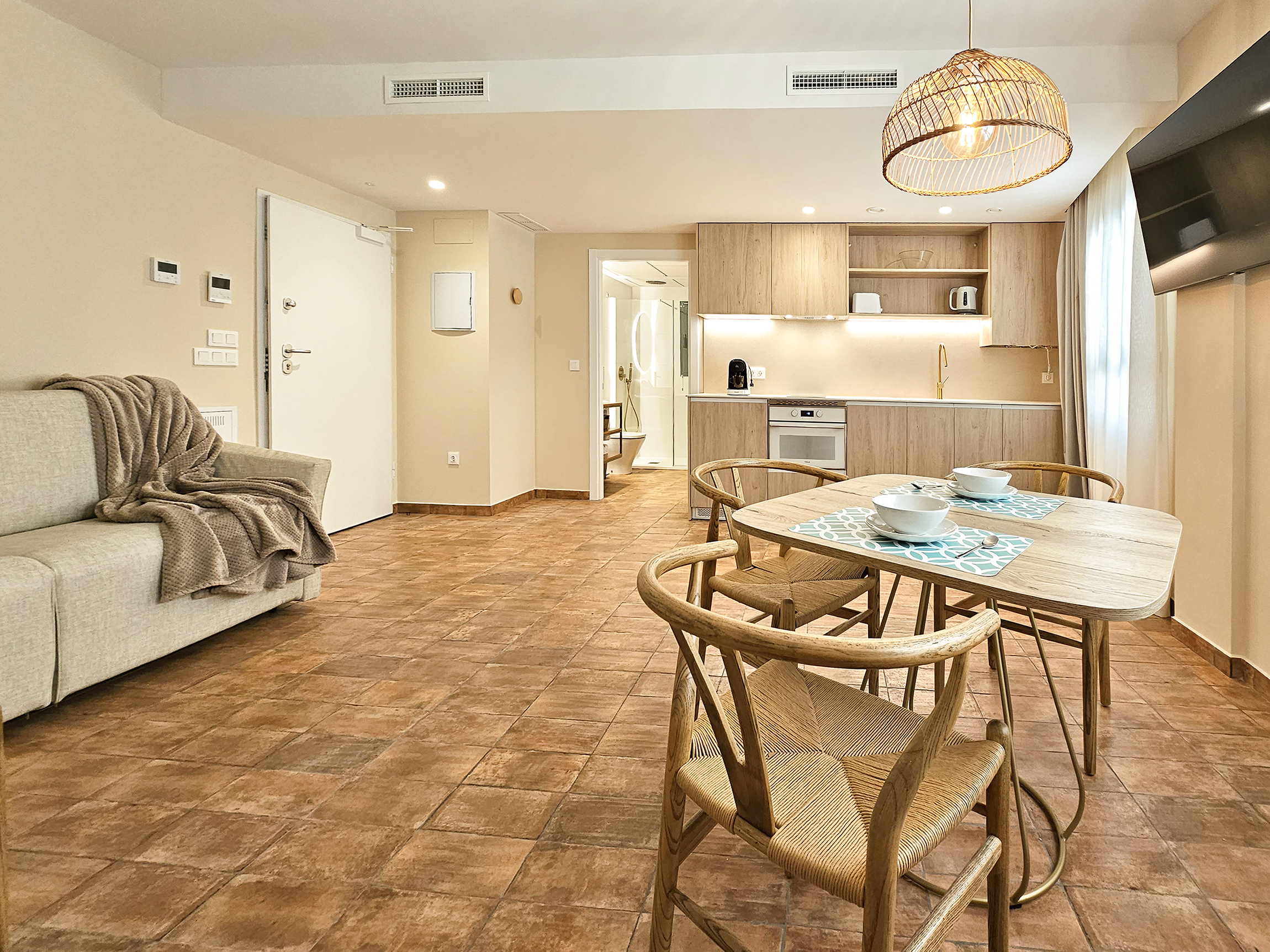 - Living-dining room with a 140x190cm double sofa-bed, dining table, TV-HD Smart TV and access to a terrace.