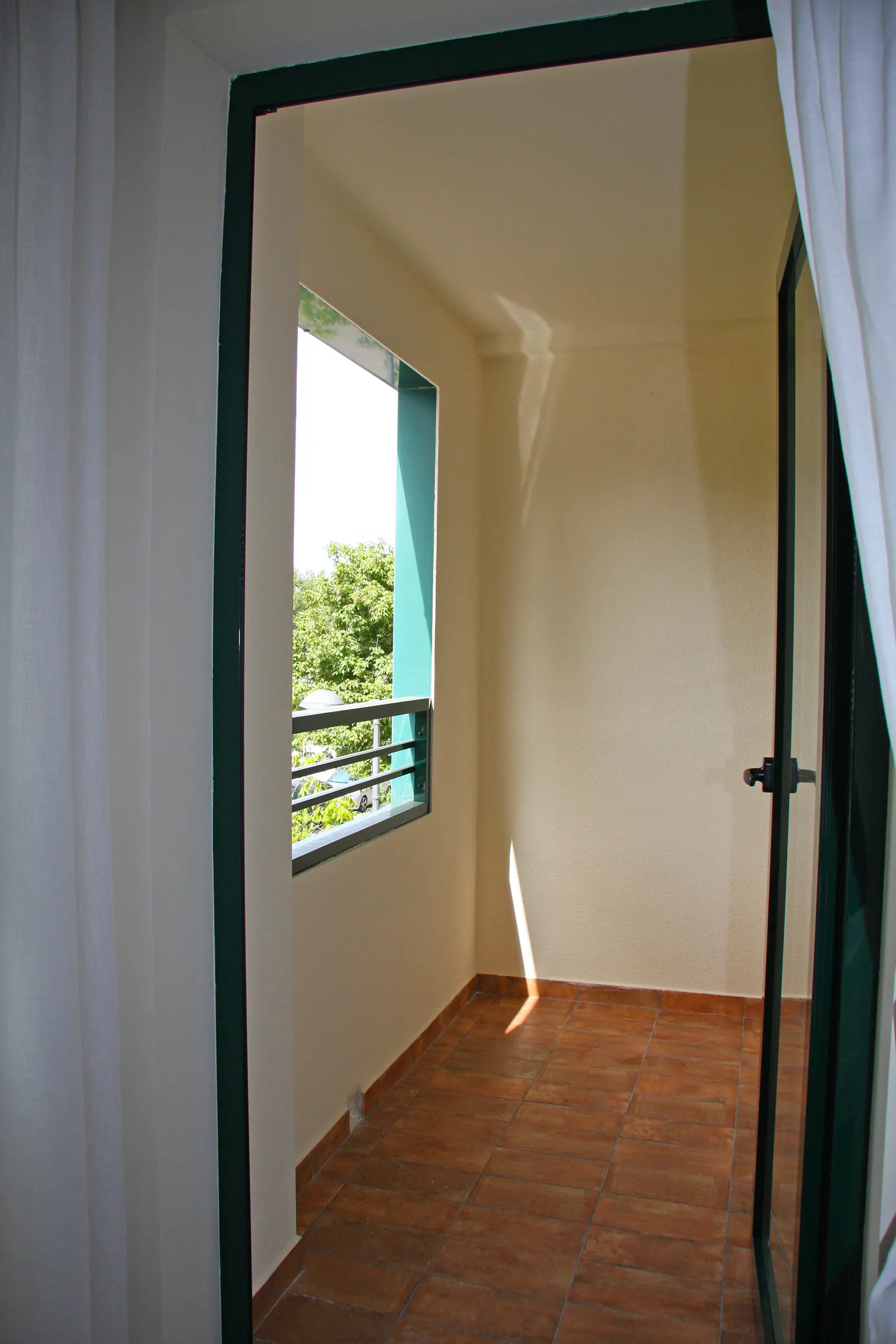 - 3 m2 balcony with splendid views of a quiet garden square and equipped with a table and two chairs.