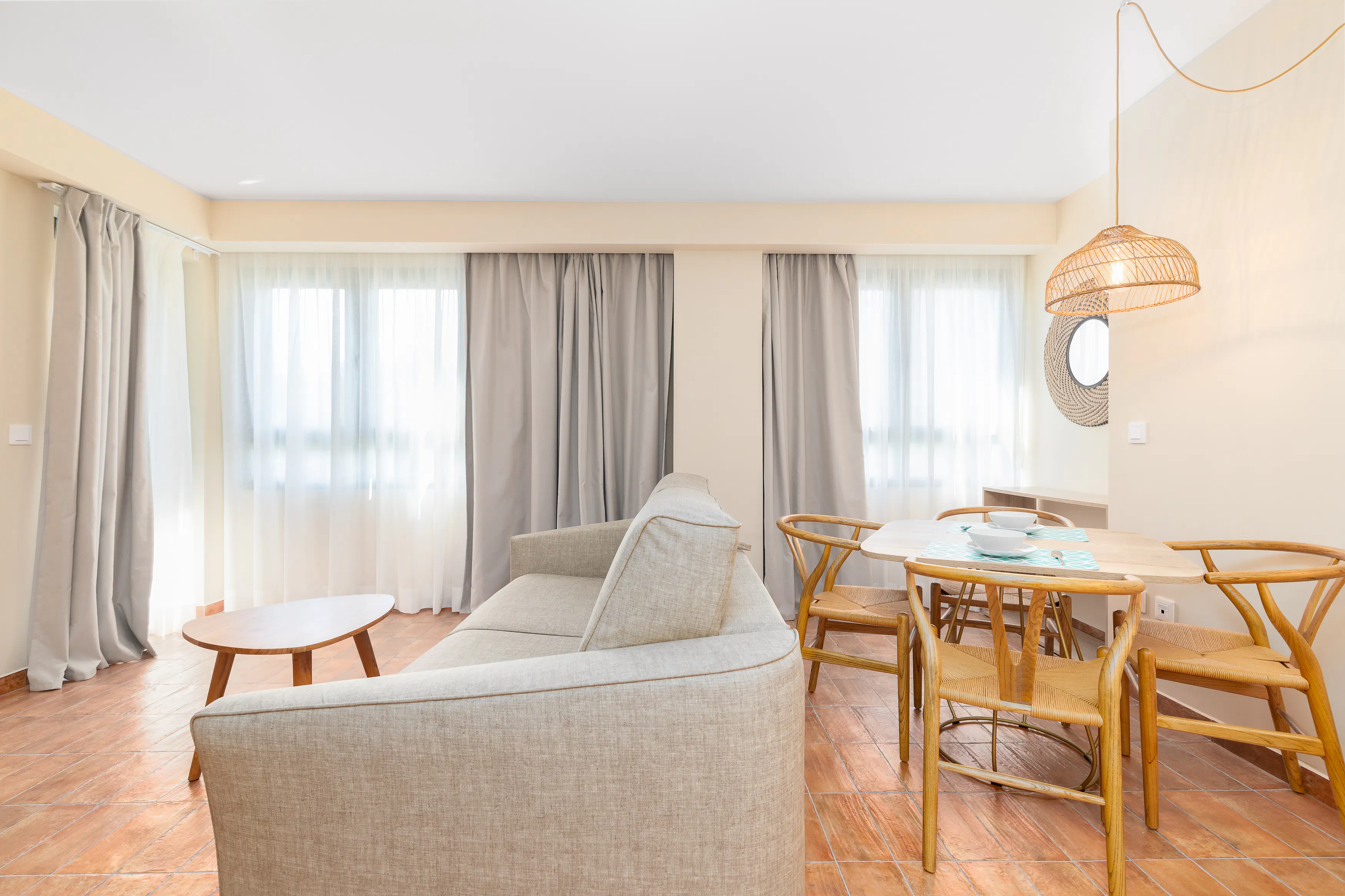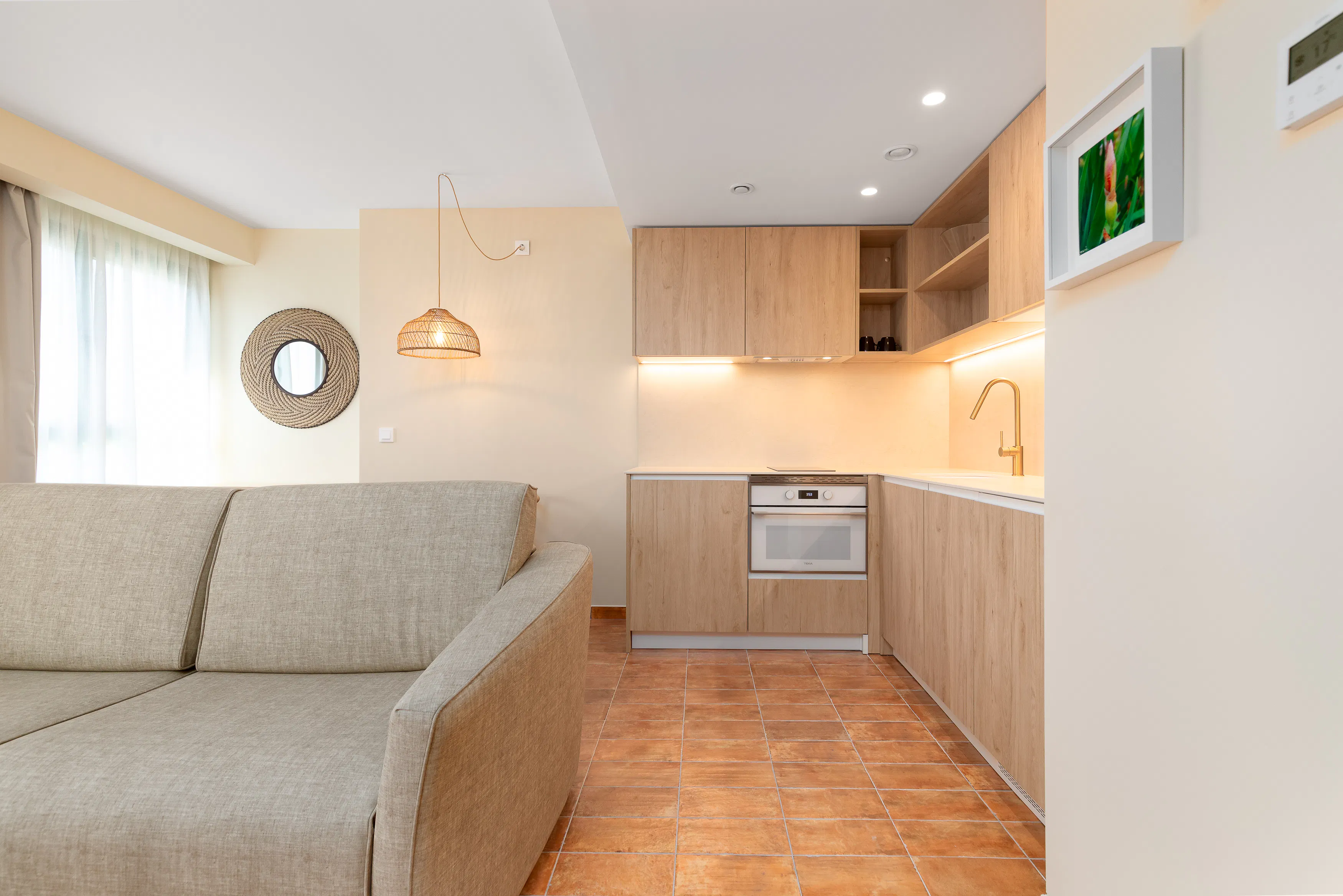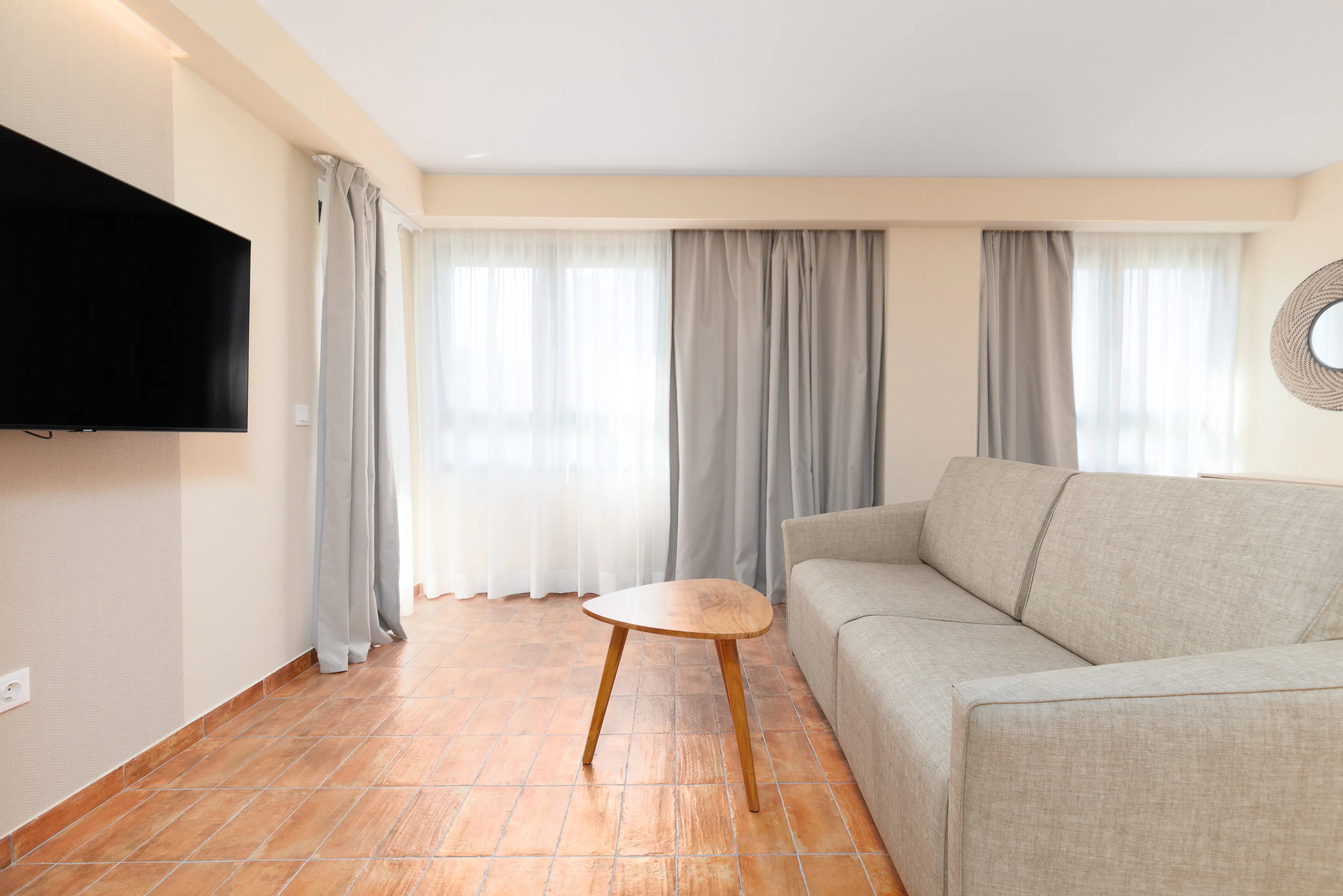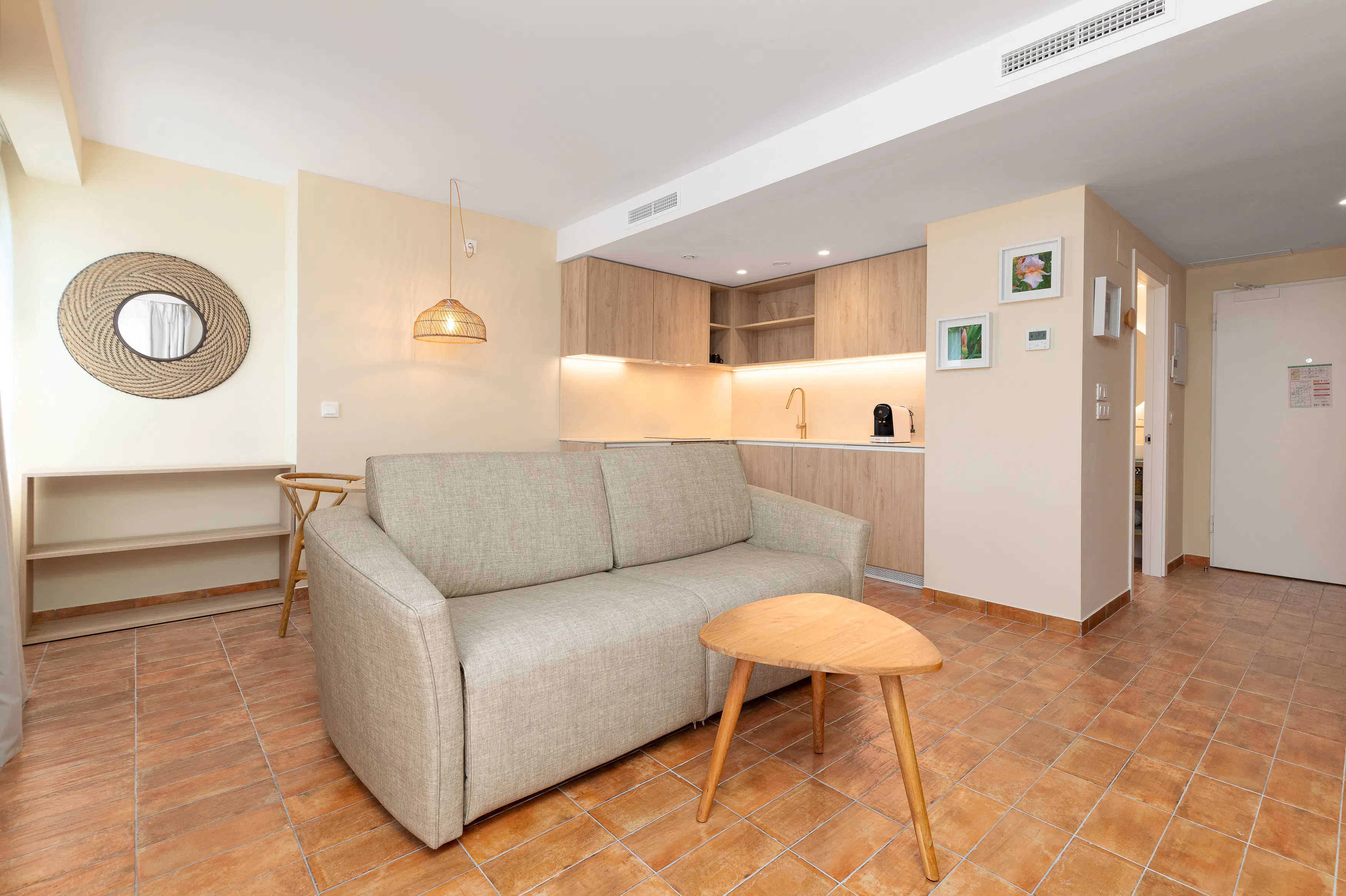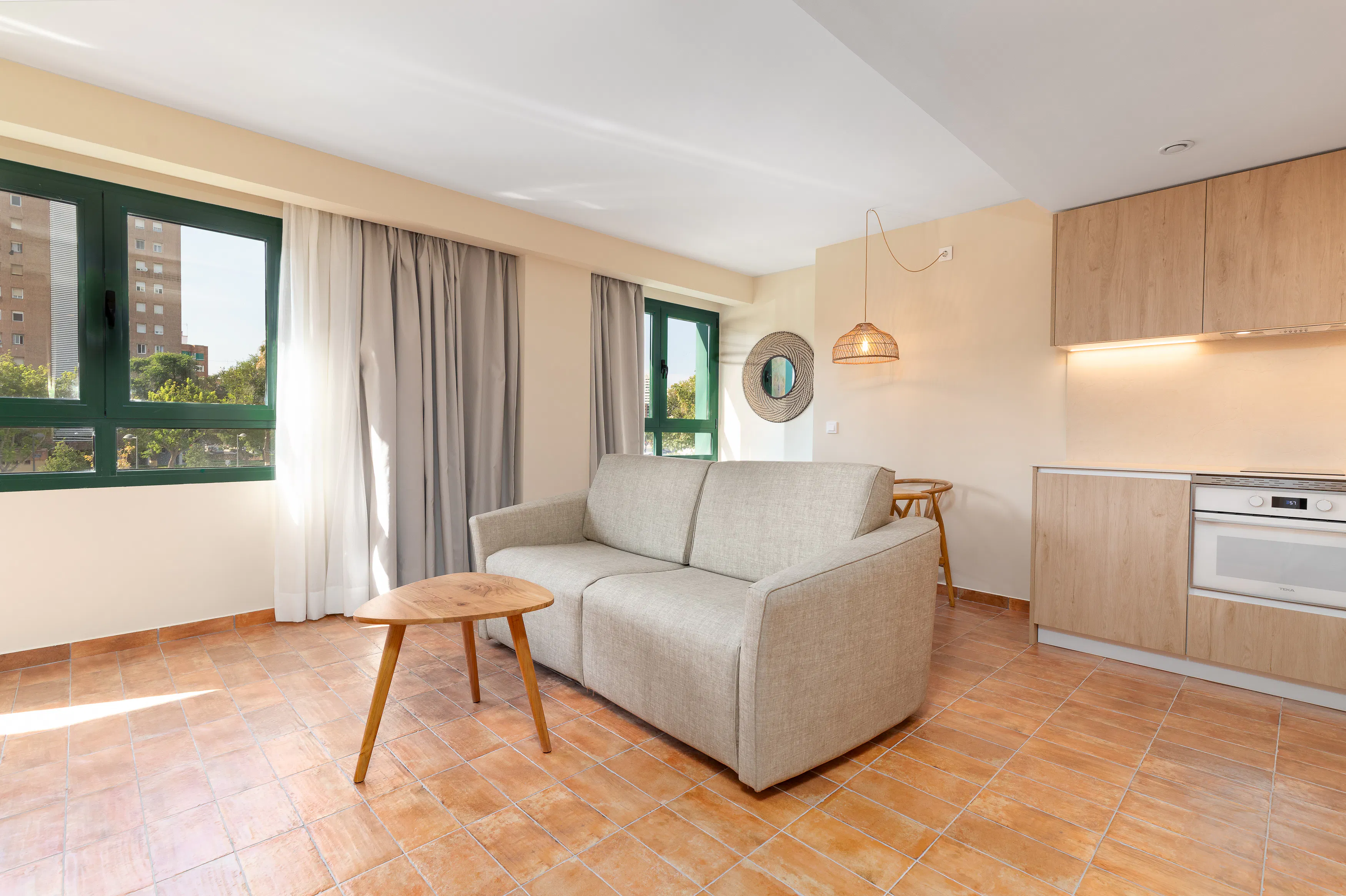 - Living-dining room with a 140x190cm double sofa-bed, dining table, TV-HD Smart TV and access to a balcony.