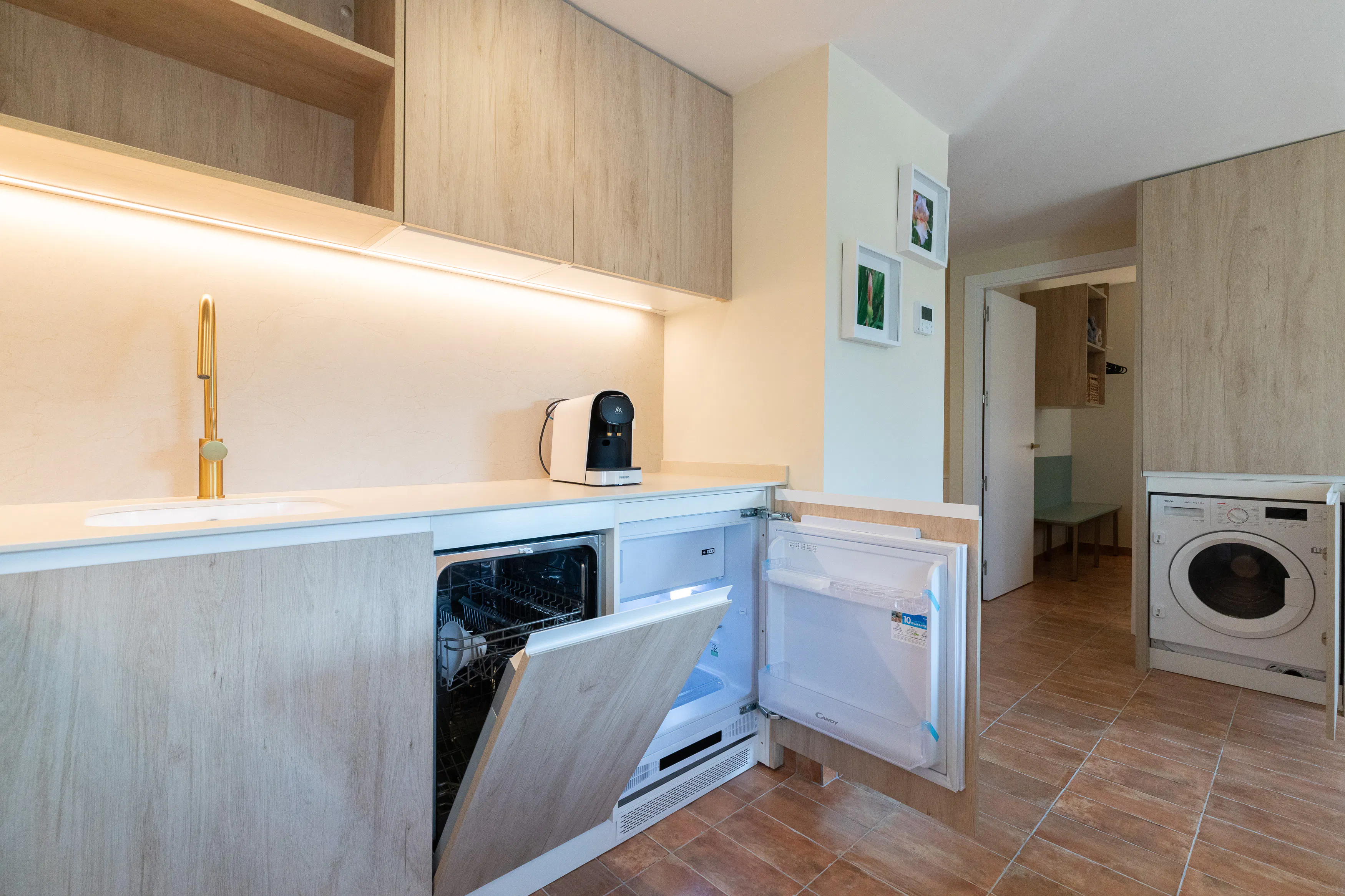- Practical fully equipped kitchen, with dishwasher, washer dryer, microwave-oven, ceramic hob, fridge/freezer, Nespresso coffee machine, toaster, tea kettle...